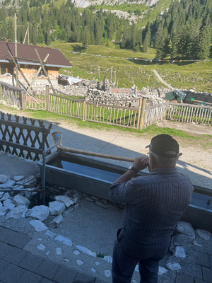 Da es schönes Wetter war, kamen sehr viele Gäste, das bedeutet viel Arbeit mit kochen und Geschirr waschen, Käse verkaufen und darüber die tägliche Arbeit nicht vergessen. Geisskäse fertig