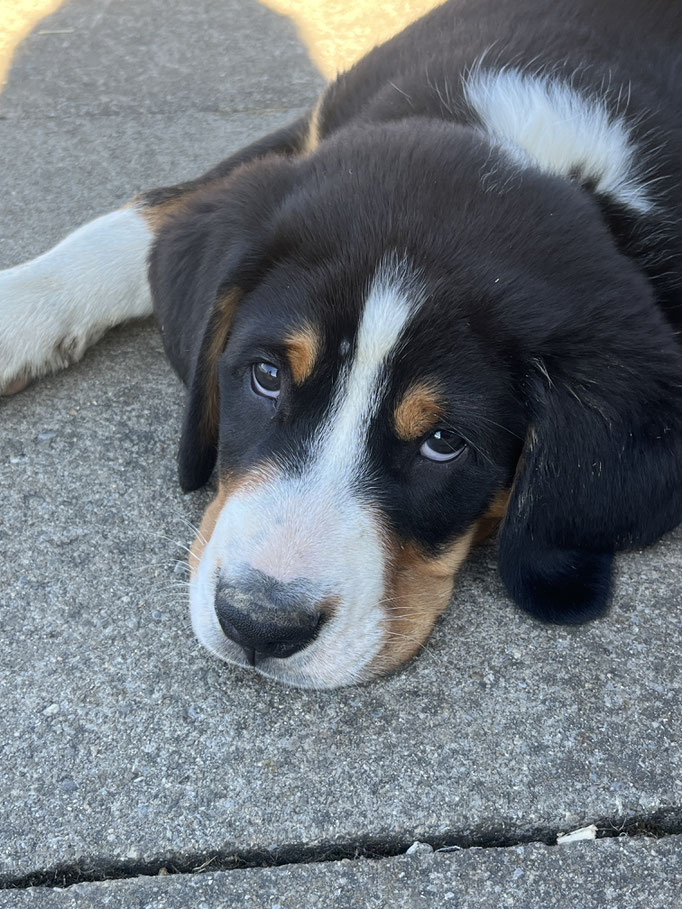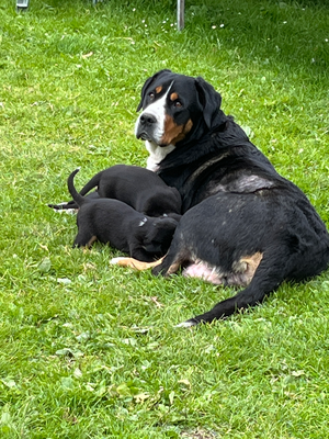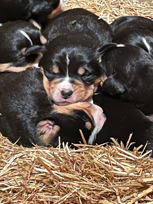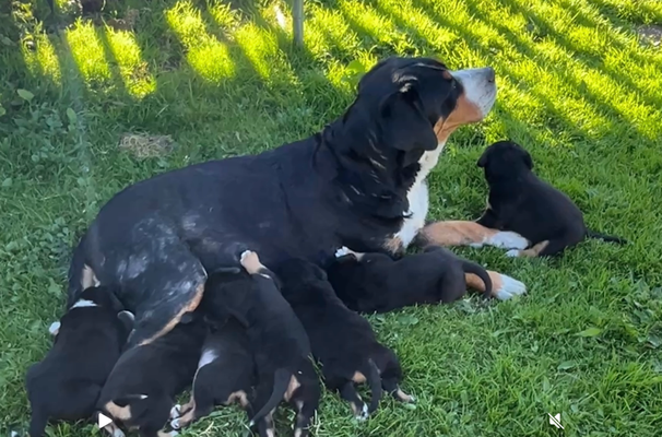 Am späten Nachmittag darf ich dann zum Abschied noch einem Alphornkonzert zuhören, dass war wunderschön. Die kleinen Welpen haben teilweise mit gesungen. Zum Schluss noch einmal Welpen suchen,