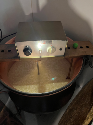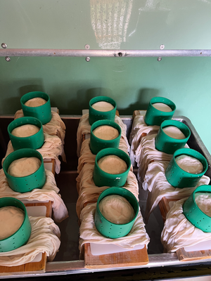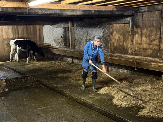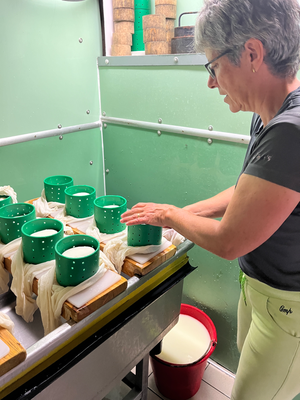 werde gleich in alles mit einbezogen, und mir schwirrt ein wenig der Kopf. Es ist enorm spannend, wie man Käse mit so wenig Platz macht und dann gleich noch zwei Sorten. Einmal machen wir heute