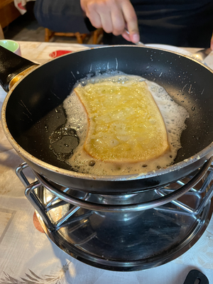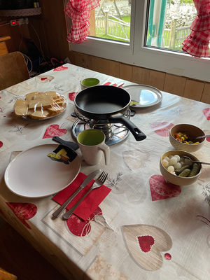 Zum Abendessen gibt es Flammkuchen und natürlich wieder mehr Personen am Tisch als gerechnet.
