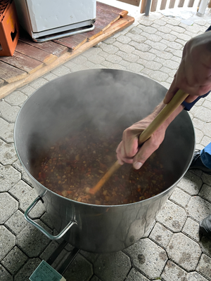Der Tag heute startete verregnet und so haben wir viele Indoorarbeiten gemacht. Es waren zwei grosse Gruppen zum Mittagessen angemeldet, die Übernachtungsgäste bekamen noch Frühstück, nebenbei