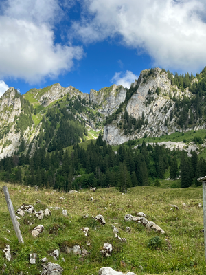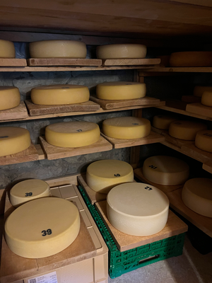 Dann durfte ich mit auf die andere Alm. Wir mussten hier im Käsekeller Platz schaffen, die kamen in die grosse Schatzkammer auf der andern Alp. So habe ich gleich noch etwas von der Gegend