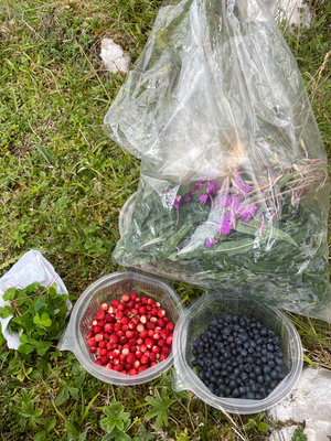 Nach dem Mittagessen noch mehr Zeit zum sammeln und so ging ich noch zum Häpbeeri (Erdbeeren) und Heetene (Heidelbeeri) sammeln und Weidenröschen für mein nächstes Projekt den fermentierten