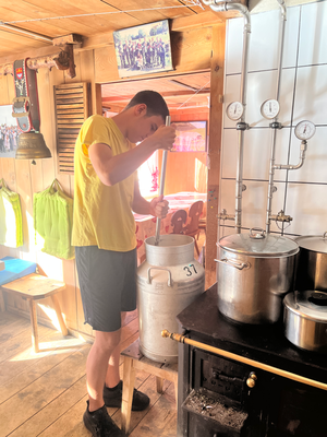 Am Abend werde ich noch den Käse schmieren. Und natürlich wird immer viel Geschirr gewaschen, alle Käserutensilien gewaschen und noch vieles mehr.