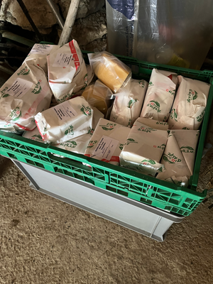 Am Nachmittag haben wir die Käsebestellungen gerichtet die ich morgen mit nach Hause nehme. Das waren etwa 2 Stunden Arbeit. Am Abend dann noch ein letztes Mal beim Stallmisten