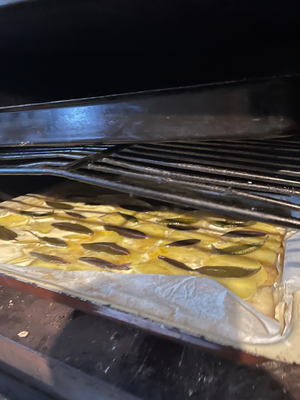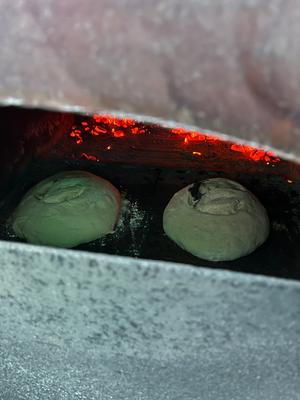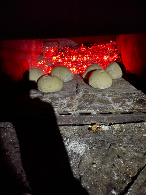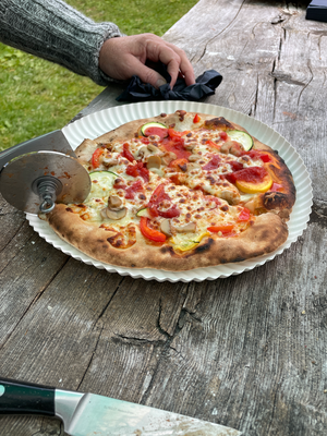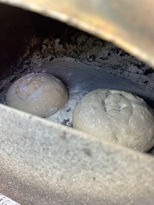 natürlich fürstlich bewirtet wurden. Nach dem Mittagessen habe ich den Pizzaofen eingeheizt. Nach zwei Stunden einfeuern habe ich es gewagt. Leider war das zu wenig Hitze und das Brot wurde nicht
