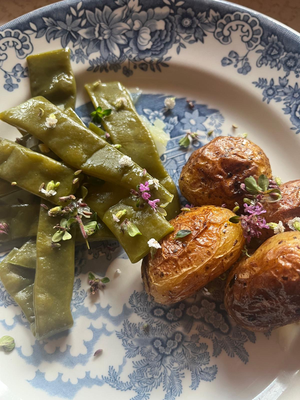 Thymian, Silbermänteli, Schafgarbe und Frauenmantel gesammelt. Den Kümmel und die Schafgarbe sowie den Thymian haben wir dann beim Mittagessen über die Kartoffeln gestreut. Zum Dessert gabs noch
