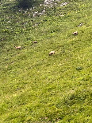 Weiter unten sehen wir noch eine Gämse und nach 3 Stunden sind wir wieder auf der Alp. Genau richtig zum zMittag. Zum Essen sehr viele Wanderer mit den unterschiedlichsten Wünschen. Aber alle