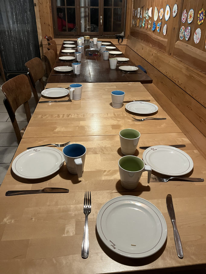 Um 14:00 Uhr werden wir abgeholt und wieder zur Alp gefahren. Dort erwarten uns die Älplerin und ihr Bruder mit einem wunderbaren Abschlussessen. Wir sind alle sehr hungrig und so ist es kurzzeitig sehr still, bis auf ein paar mmh ist das fein und danke fürs Kochen. Nach dem Essen sitzen wir noch gemütlich und reden ich spüre die Entspannung. Für die Älpler und ihre Helfer bleibt aber noch einiges an Arbeit bis beide Alpen Winterfest sind. Und es eilt, denn nächste Woche ist Schnee vorhergesagt. Es war mir eine Ehre, dass ich dabei sein durfte.